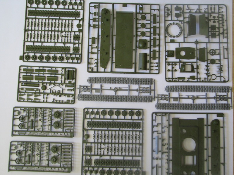 Набор деталей из пластмассы для сборки одной модели танка.